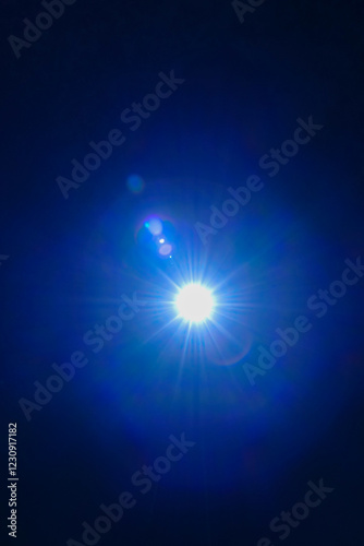 Lens Flare. Light of a lantern in the night. blue Light of a lantern in the night.Illuminated Silhouette with Bright Light Flare