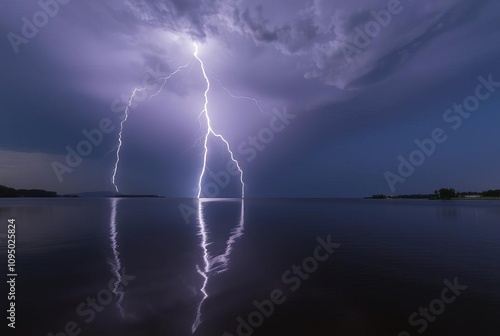 _. Lightning Over a Serene Lake A calm, serene lake is momentari