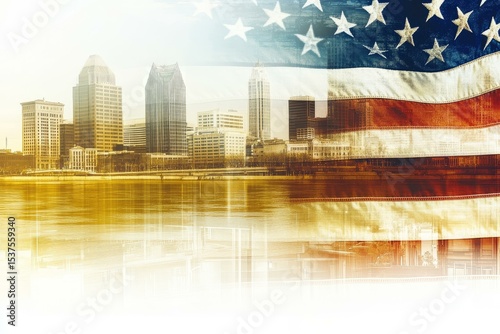 Loisville skyline collage with American flag overlay, USA urban background for commercial use