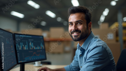 Mid Shot of indian Man Analyzing Inventory Data in a Warehouse