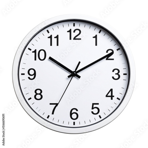 Minimalist White Wall Clock with Bold Black Numbers, isolated PNG with shadow