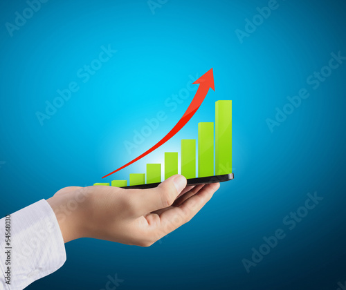 mobile phone in hand and graph