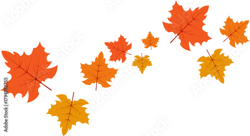 Multicolored autumn leaves in rich red, orange, and yellow hues isolated on a white background. Bright seasonal decor perfect for banners, prints, and fall-themed designs. autumn colored fall leaf te