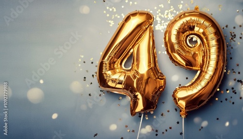 Number 49 golden balloons with copy space