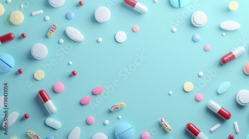 Pharmaceutical-themed Background with Tablets and Capsules