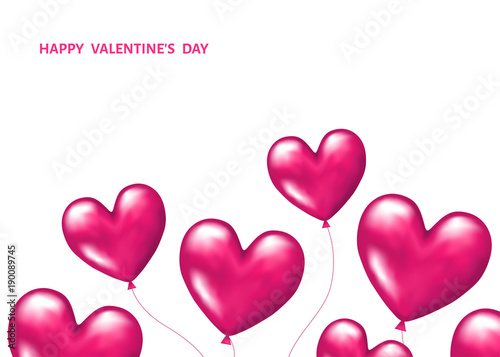 Pink realistic 3d balloons in shape of hearts.