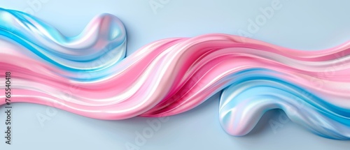 Pink-blue-white wave on light blue backgroud with pink-blue swirl on left side of wave