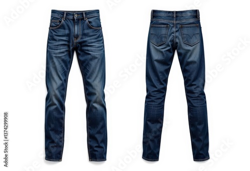 Raw Denim Blue Jeans Isolated Unwashed and Untreated, Ideal for High End Fashion, Designer Apparel, and Customization Projects.