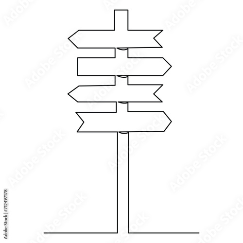 Road direction continuous one line drawing of signpost arrows to the left and right outline vector illustration