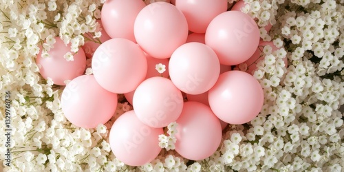 Romantic Pink Balloon and White Flower Arrangement for an Outdoor Garden Celebration