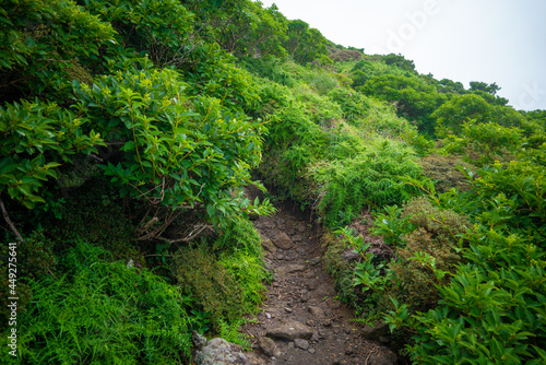 宮崎県えびの市、小林市、鹿児島県霧島市の韓国岳と大浪池を登山している風景 Scenery of climbing Mt. Kankoku and Onami Pond in Ebino City, Kobayashi City, Miyazaki Prefecture and Kirishima City, Kagoshima Prefecture.