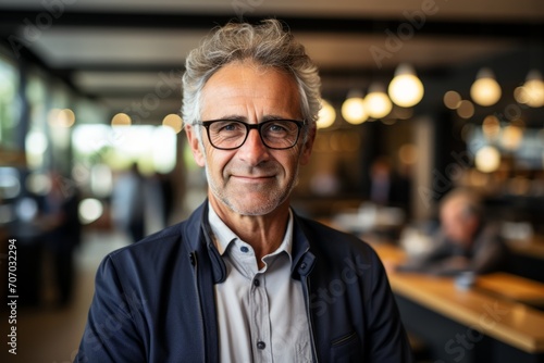 Senior entrepreneur, confidently using a digital tablet to track the progress of his startup business, Generative AI