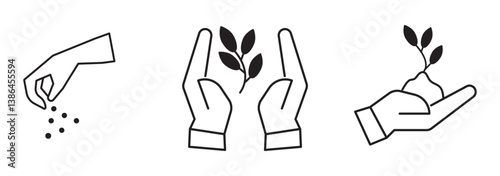 Set Growth Eco Tree Environment. Plant in Human Hand Symbol Collection on White Background. eps 10