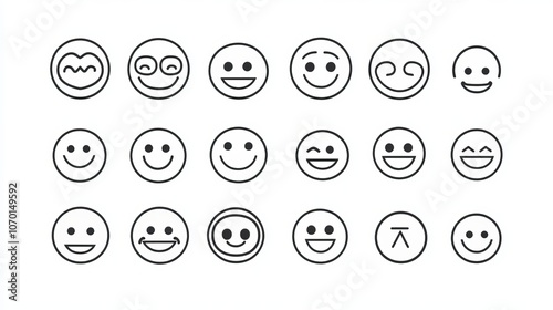 Set of emoticons linear icons. Emoji outline icons. Smile icons cartoon. Stickers emoticon. Vector flat icons for social media.