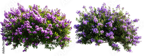 Side View of Purple Flower Shrub with Blooming Branches Isolated Transparent Background PNG