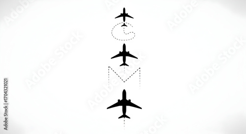Silhouettes of airplanes and flight paths — aviation route icons and vector trajectories for travel, logistics and flight map design
