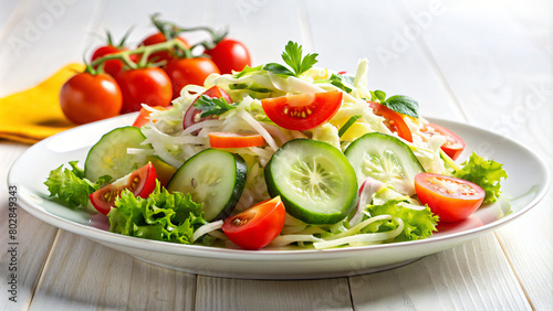 Simple Summer Salad of Sliced Tomatoes and Cucumbers on a White Plate
