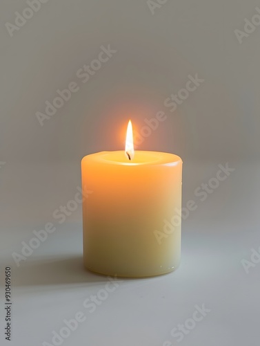single candle light in the foreground, with white background