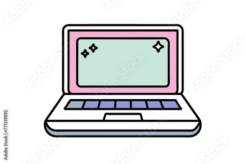 single sticker, Laptop Illustration Vector cute, pastel colour vector style, white background.