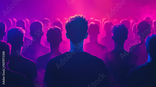 single unique figure stands out amid a monochromatic crowd, symbolizing individuality, courage, and self-expression. Perfect for themes of identity and uniqueness