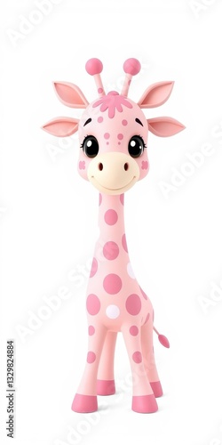 Soft Pastel Pink 3D Cartoon Giraffe with Polka Dots, Isolated on White for a Playful and Gentle Look