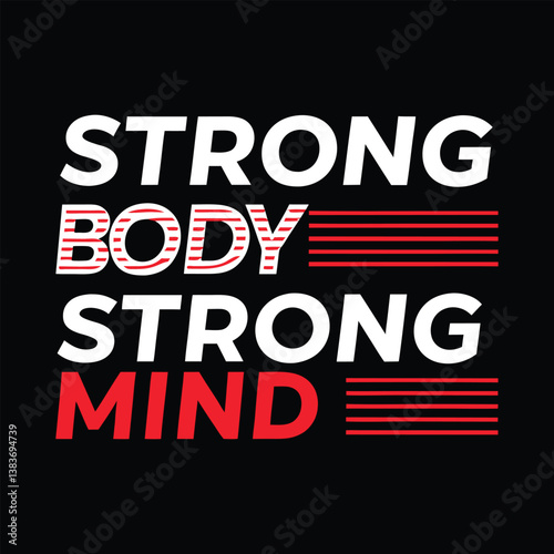 Strong Body Strong Mind Motivational Fitness and Wellness Typography t-Shirt Design