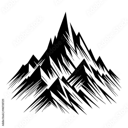 Stylized Mountain Range Artwork, Black and White, Nature and Adventure