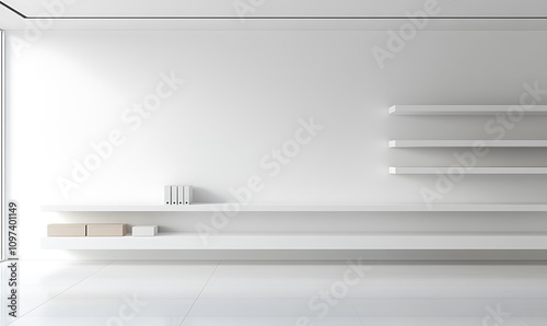 Supermarket Shelves With Blank Banners And POS Display Design. 3D rendering design.