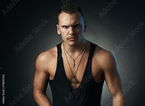 suspicious man on a black background