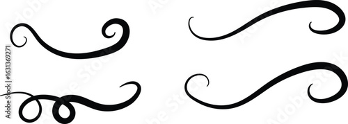 Swoosh and Swoop Underline. Curve paint tails. brush scribble underline. Flourishes and swoop vintage design. Marker pen line highlight swoosh stroke