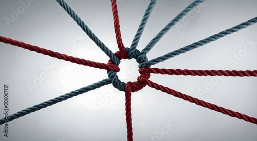 Team rope diverse strength connect partnership together teamwork unity communicate support. Strong diverse network rope team concept integrate braid color background cooperation empower power.