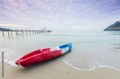 The colourful of kayak on the beach.