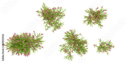 Top view of Crape myrtle trees with transparent background, 3D rendering, for illustration, digital composition, architecture visualization