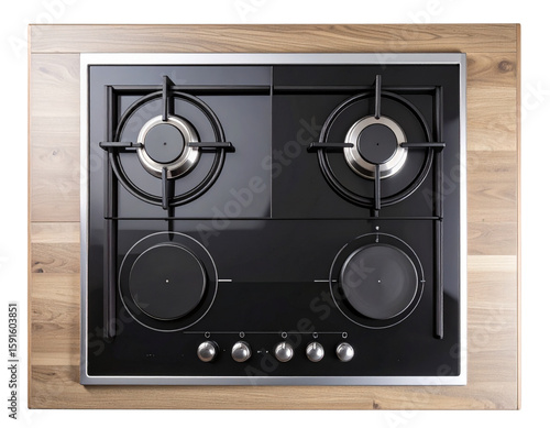 Top-Down View of Modern Electric Cooktop on Glossy Countertop with Soft Afternoon Light, Isolated PNG