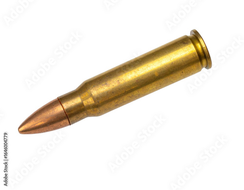 Top-Down View of Old Brass Bullet with Weathered Texture, Transparent Background