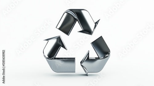Transparent PNG of a corporate recycling icon made from polished aluminum, ideal for business sustainability branding, isolated on a white transparent background