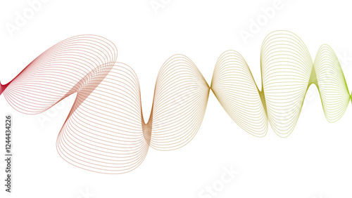 Vector curvy abstract line art wavy flowing dynamic green purple white background in concept music or sound, wave, wind, information flow