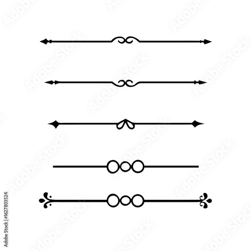 Vector illustration of decorative border and frame set. Filigree calligraphic ornamental curls. Decorative retro design elements for menu, certificate diploma, wedding invatation card, outline