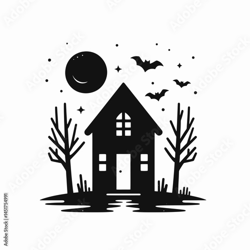 very simple flat and single minimalist Spooky Halloween House Silhouettes in black on a white background