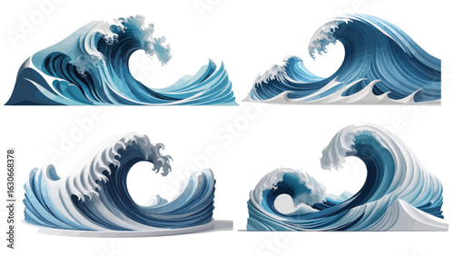 Water splashes logo, flowing liquid motion curves stripes swirls silhouettes set vector illustration