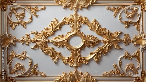 white background with a gold-colored floral pattern.