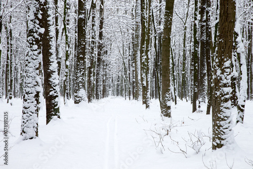 Winter forest and the road. Winter landscape. Forest landscape