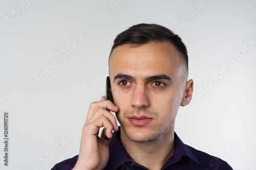 young man talking on the phone. He is calm and confident as a successful businessman.