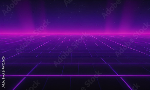 0s Retro wave style background displayed on vintage computer screen. VHS noise and glitch effects. Bright purple color