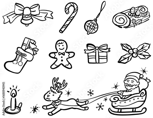 可愛いクリスマスのイラストセット 1色