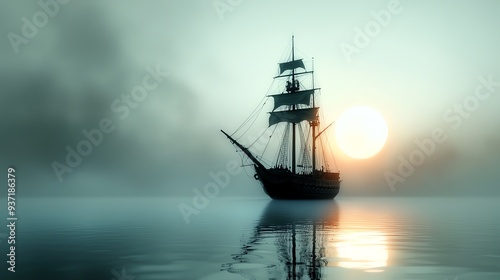1 Pirate ship, haunted by ghostly crew, full moon above, eerie mist, Watercolor style