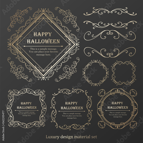 ハロウィンのフレーム素材、10月、アンティークな装飾、ビンテージな模様、植物のツタ