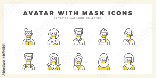 10 Avatars With Medical Masks Two Color icon pack. vector illustration.
