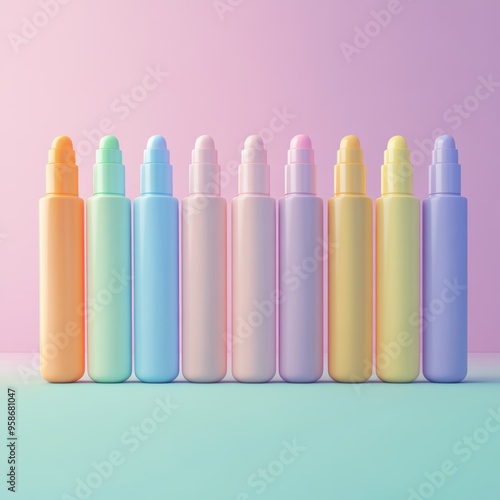10. Pastel highlighters, neatly aligned in a row, 3D illustration