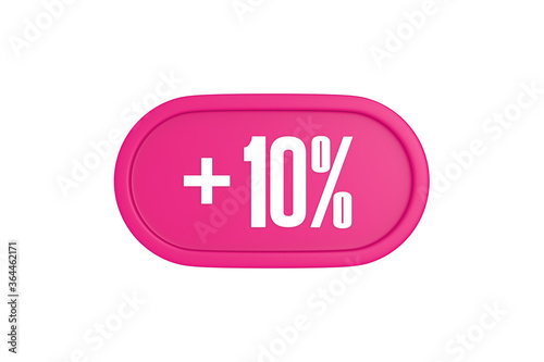 10 Percent increase 3d sign in pink color isolated on white background, 3d illustration.